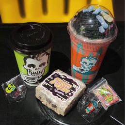 this is my second time coming to rad coffee. it's such a cool experience for coffee lovers and even non coffee drinkers! the theme is horror and scary. there is a TON of drinks to choose from and even customize. today i just got a chai with oat milk and it's delish. the cinnamon on top is a plus! there's tons of coffee bean bags & merch like sticker and pins (i got a cute sticker) the cashier was so sweet and made my drinks super quick. the only thing i'm not too fond of is how loud the music is but i guess it fits in with the aesthetic. they have vegan pastries for sale too! there's also an outside area with tons of chairs. the cool thing too is how late they close! it's so refreshing to see a coffee shop that doesn't close at 3pm, they close at midnight. i could go on and on about how wonderful this shop is. coffee enthusiasts MUST try this place out! 10/10 love coming here and will be spending more of my money here